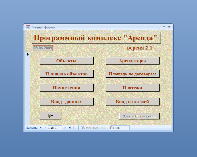 Рис. 1. Главная форма базы данных по аренде недвижимости «Аренда».