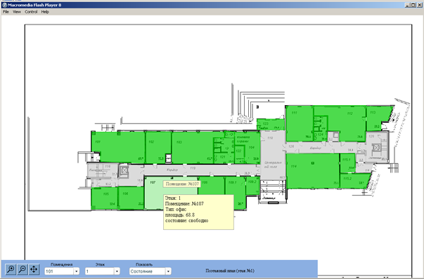 Рис. 5. Визуализация помещений на поэтажном плане в режиме «свободные».